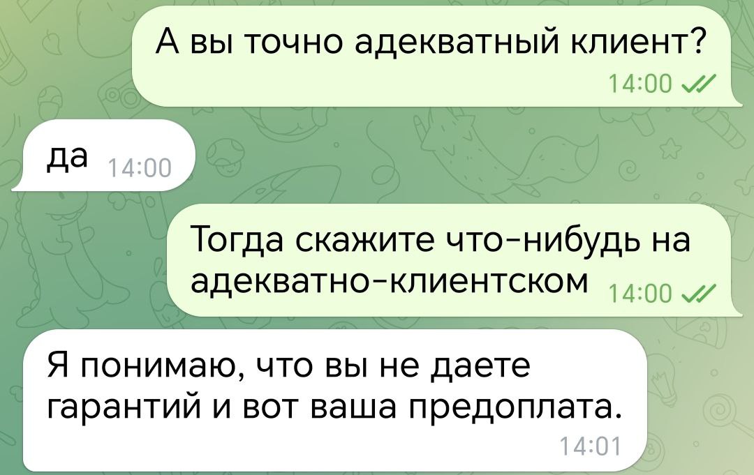С адекватными клиентами вы попадёте в другой мир, где вы просто исполняете свою работу и получаете достойные деньги.